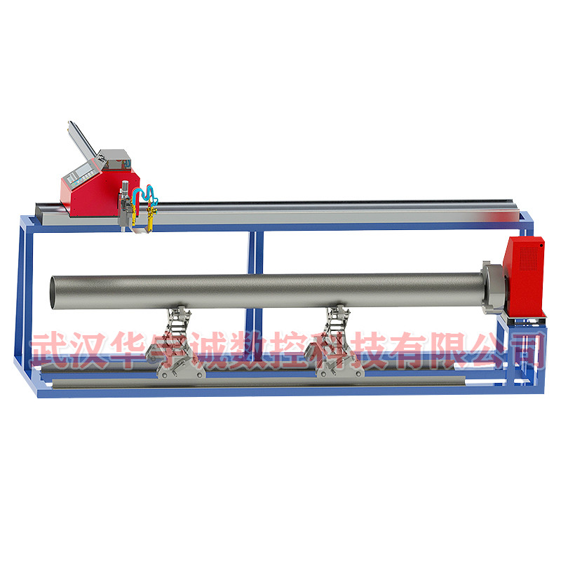 1、该型机主体采用便携十字结构,主机与管材平行布置,支架上装有移动小车装置;精密丝杆升降装置;固定夹持火焰或等离子割炬;钢管夹持采用卡盘式结构,支撑则利用丝杆传动,可移动;可升降支承圆管。